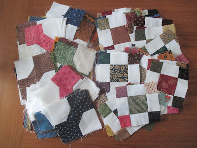 "I solemnly pledge to finish this bow tie quilt." My guild is suggesting we commit to finishing our UFOs by putting our declaration on record. I have 85 bow tie blocks from an online swap and am making 9-patches to alternate. Only 16 more to make...